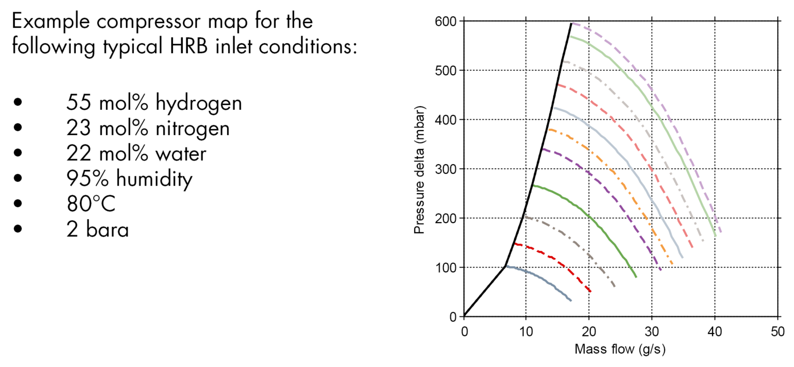 With our technology, we are able to design and build hydrogen recirculation blowers (HRB) with gas bearings. This key component can be applied to the hydrogen circuit in the anode path of a fuel cell and offers the following benefits: